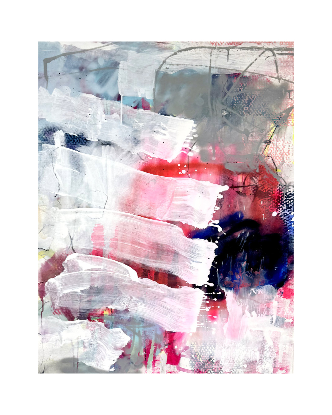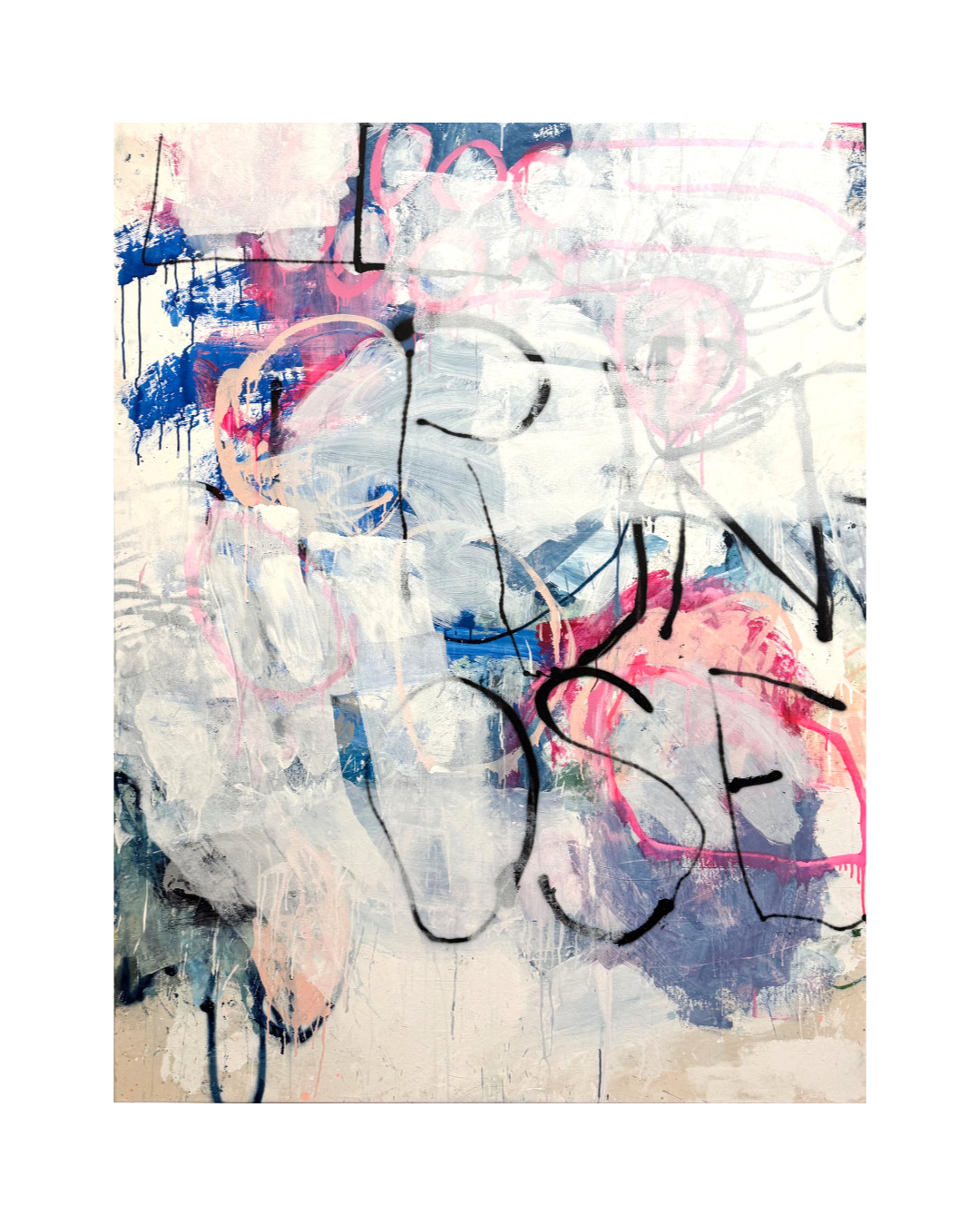 fluffy traces pink2026 - Mischtechnik auf Leinwand - 150 x 140